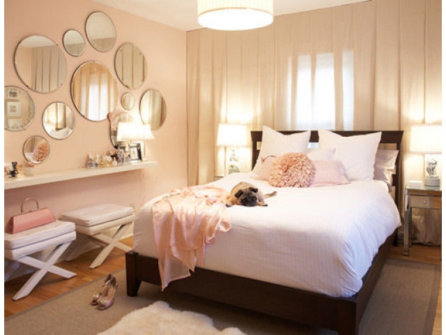 Saia do comum multiplicando formas e criando efeitos muito especiais na parede da sua casa. Combine espelhos quadrados e redondos e personalize o ambiente. Você pode, por exemplo, criar mosaicos para a cabeceira da cama, como na suíte abaixo: